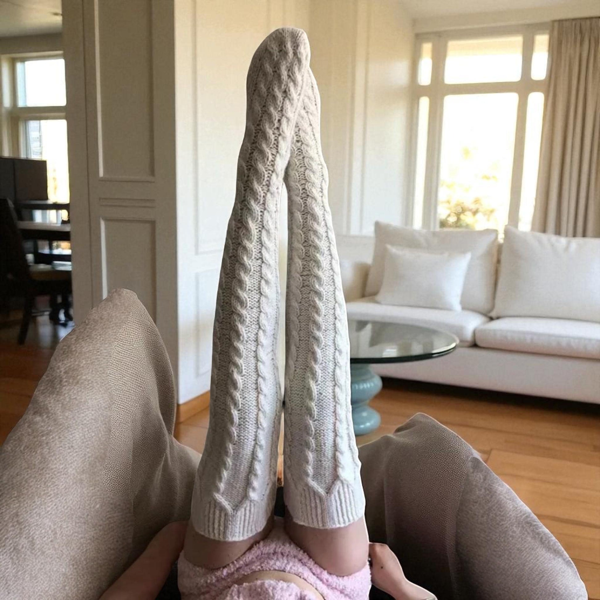 Complete your outfit with our Long/Over-the-Knee Knitted Socks & Leg Warmers. Made from ultra-soft yarn with a chunky cable pattern, they offer warmth, texture and a fashionable look. Perfect for layering in autumn and winter, lounging at home or creating a trendy style.